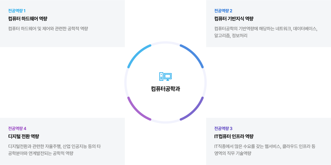 전공역량 전공교육목표 | 컴퓨터 하드웨어 역량 | 컴퓨터 기반지식 역량 | IT컴퓨터 인프라 역량 | 디지털 전환 역량 |