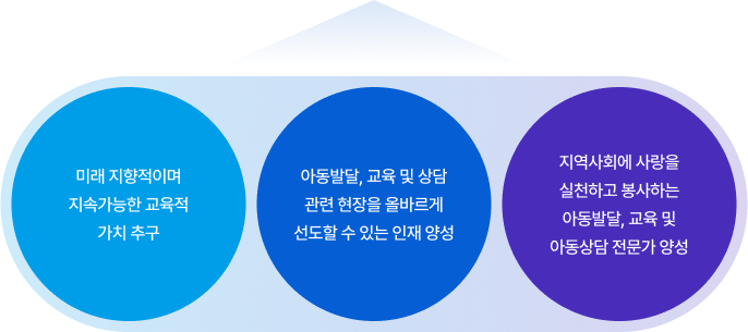 | 지역사회에 사랑을 실천하고 봉사하는 아동발달, 교육 및 아동상담 전문가 양성 |