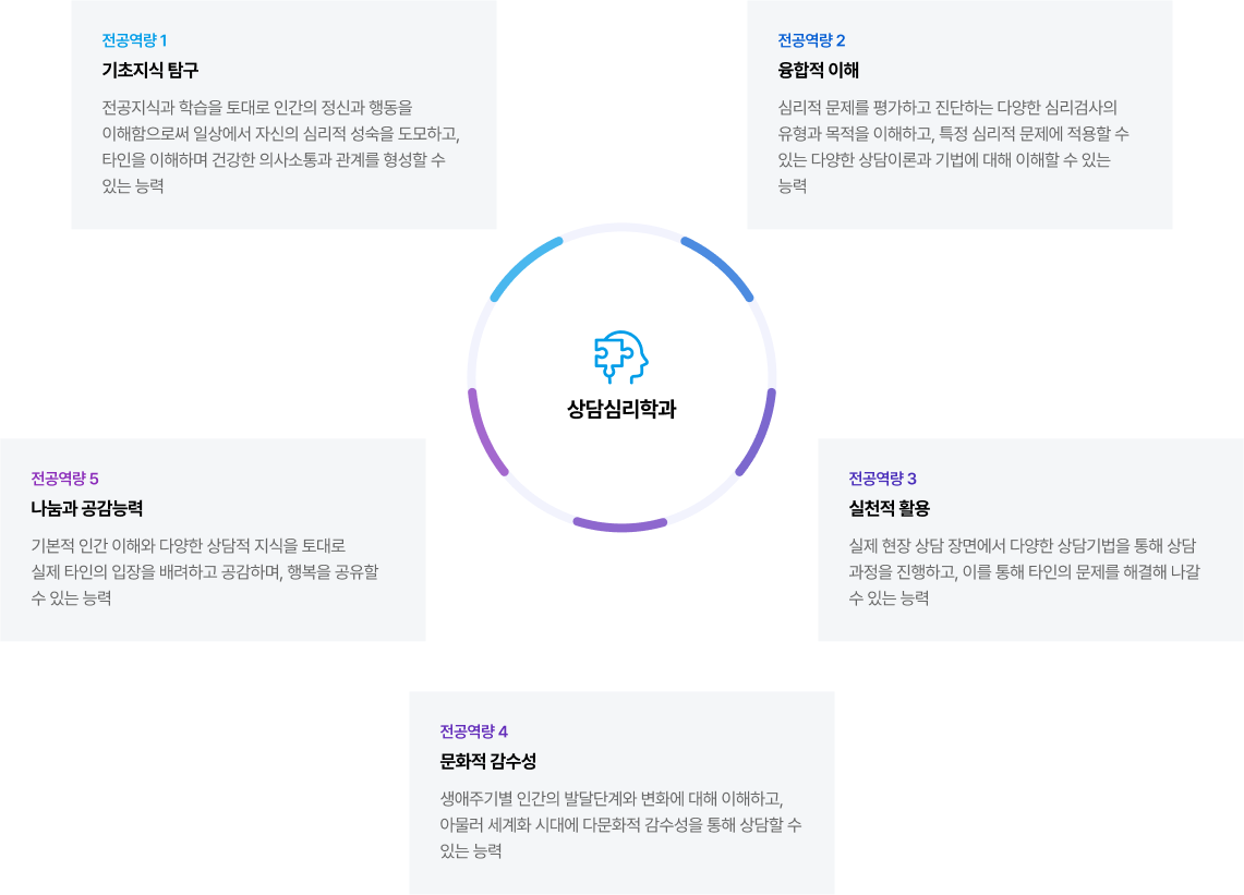 상담의 다양한 이론과 기법을 통해 타인의 정신건강에 기여한다. | |||||