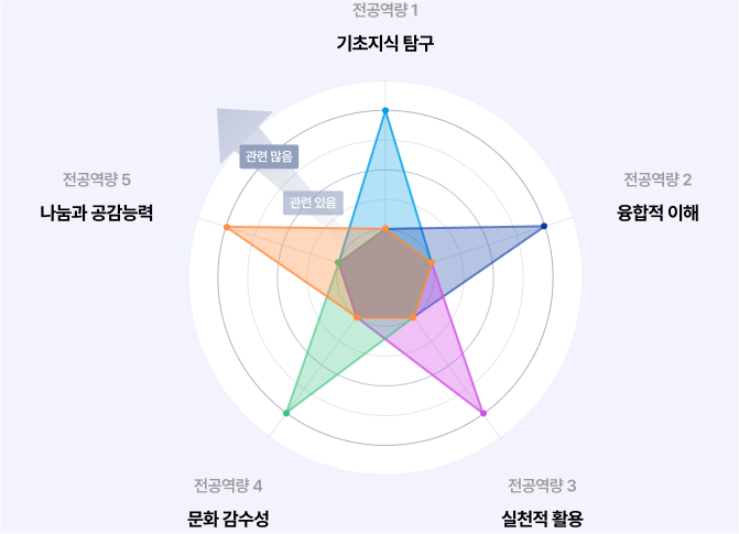 전공역량 전공교육목표 | 기초지식 탐구 | 융합적 이해 | 실천적 활용 | 문화 감수성 | 나눔과 공감능력 |