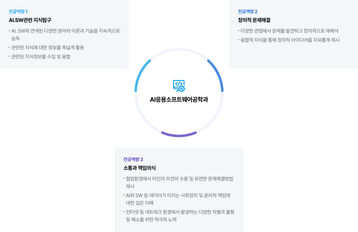 전공역량 전공교육목표 | AI.SW관련 지식탐구 | 창의적 문제해결 | 소통과 책임의식 |