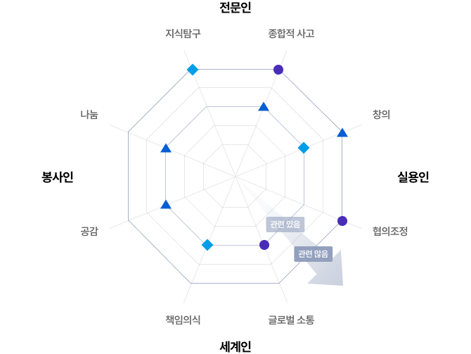 전공역량 학교역량  | 실용 기술 | 창의적 사고 | 융합 능력 | |