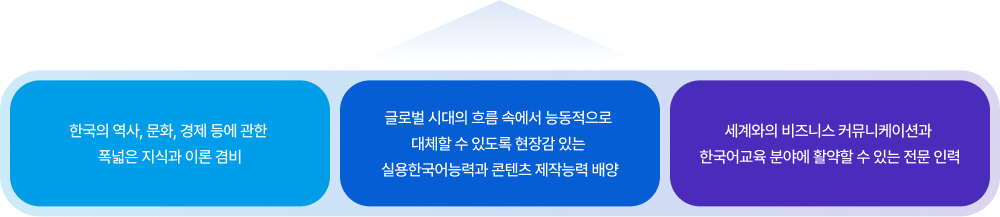 세계와의 비즈니스 커뮤니케이션과 한국어교육 분야에 활약할 수 있는 전문 인력 |